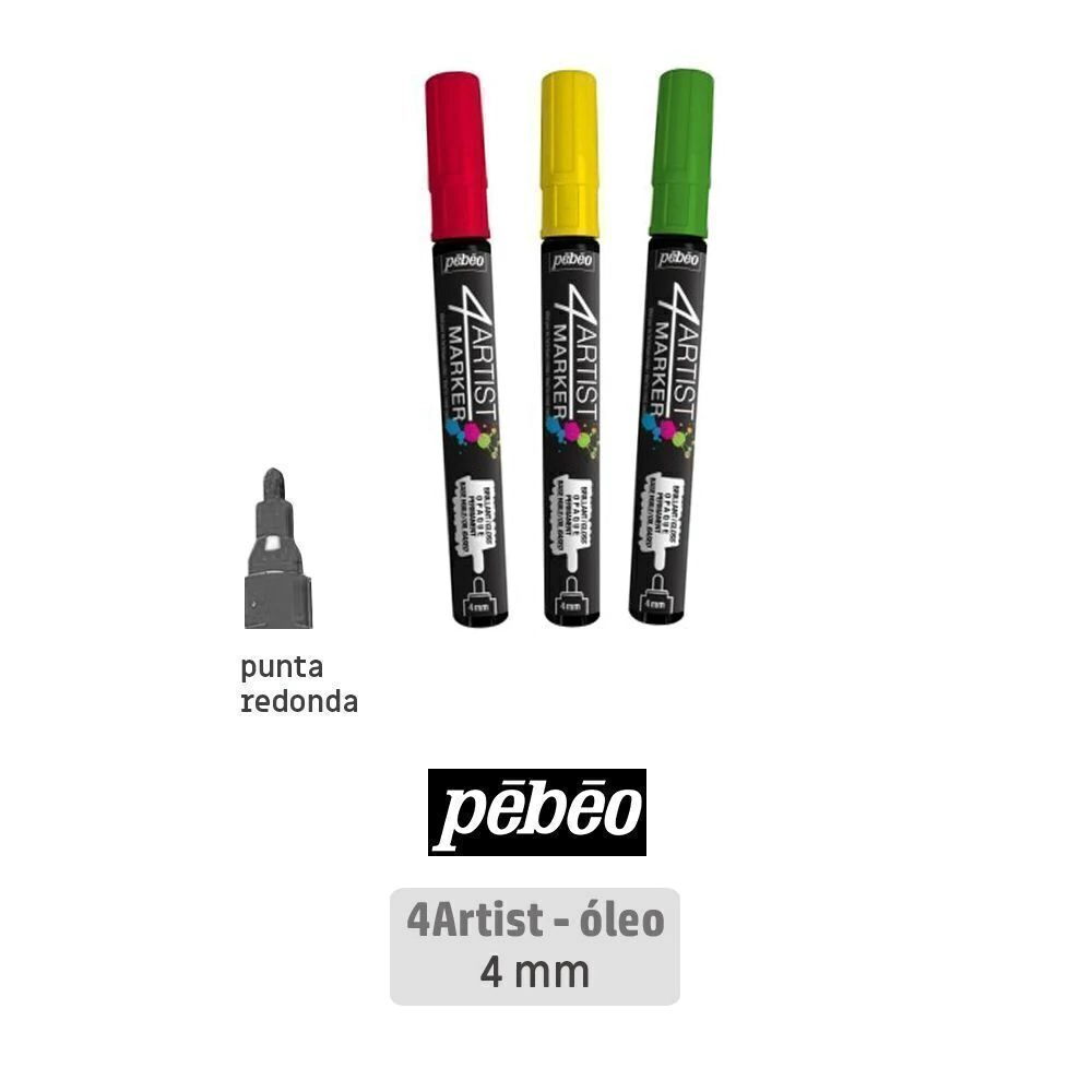 Marcador Óleo 4ARTIST - 4 mm Punta Redonda: ¡Colores vivos y duraderos para tus creaciones! Este marcador a base de aceite ofrece una profundidad de color incomparable y excelente resistencia a la luz, ideal para lienzo, papel, madera, metal y más. Su punta redonda de 4 mm permite trazos precisos y uniformes. Disponible en varios tonos vibrantes para dar vida a tus obras con brillo y opacidad excepcionales. ¡Exprésate sin límites con 4Artist!